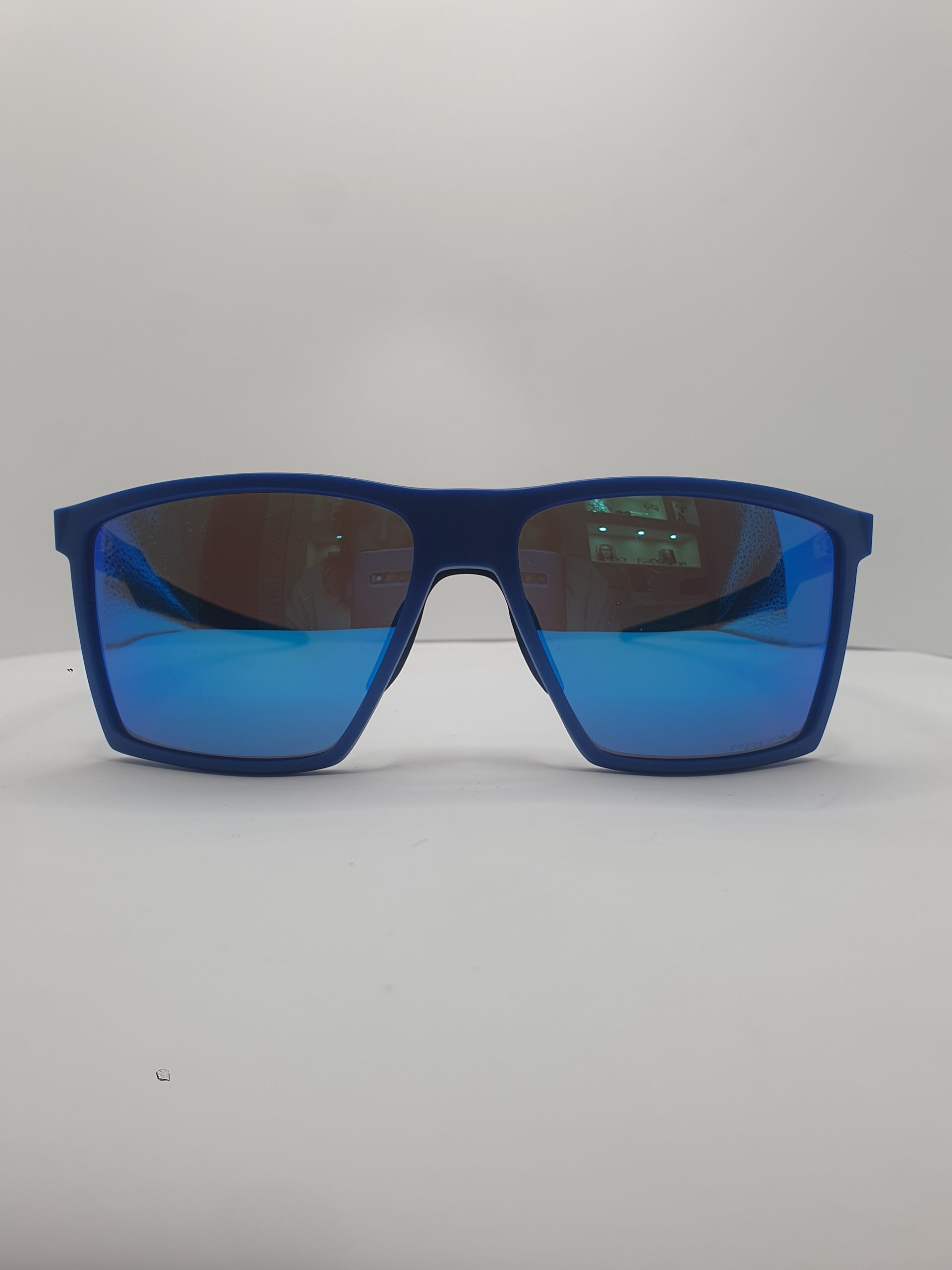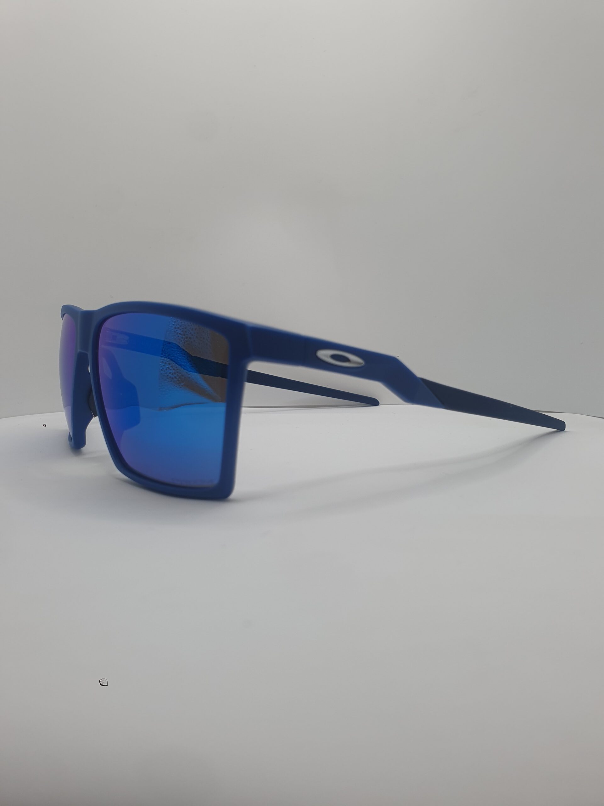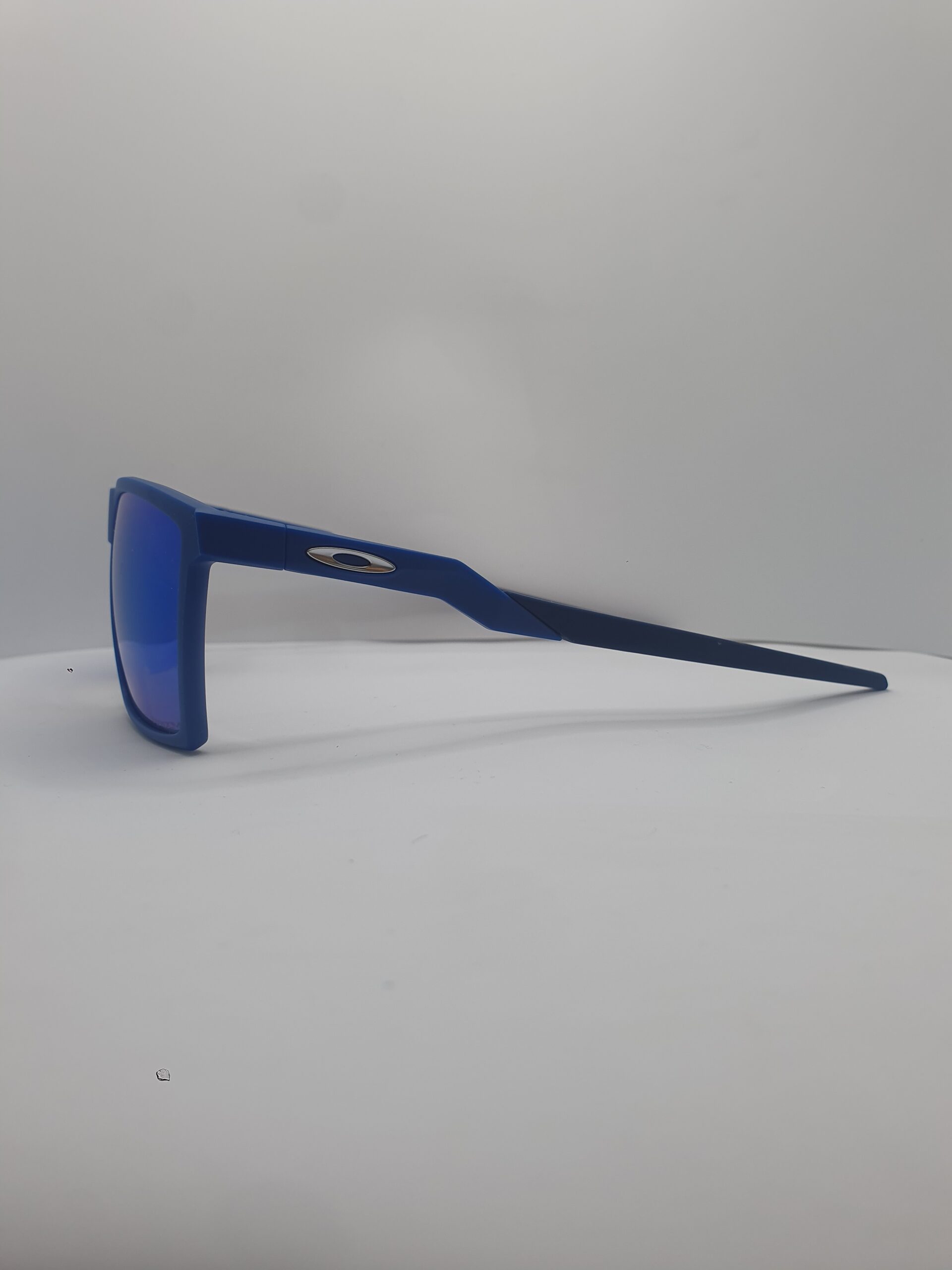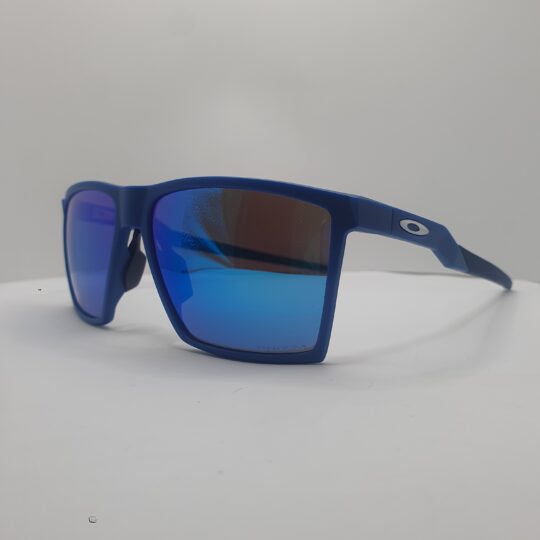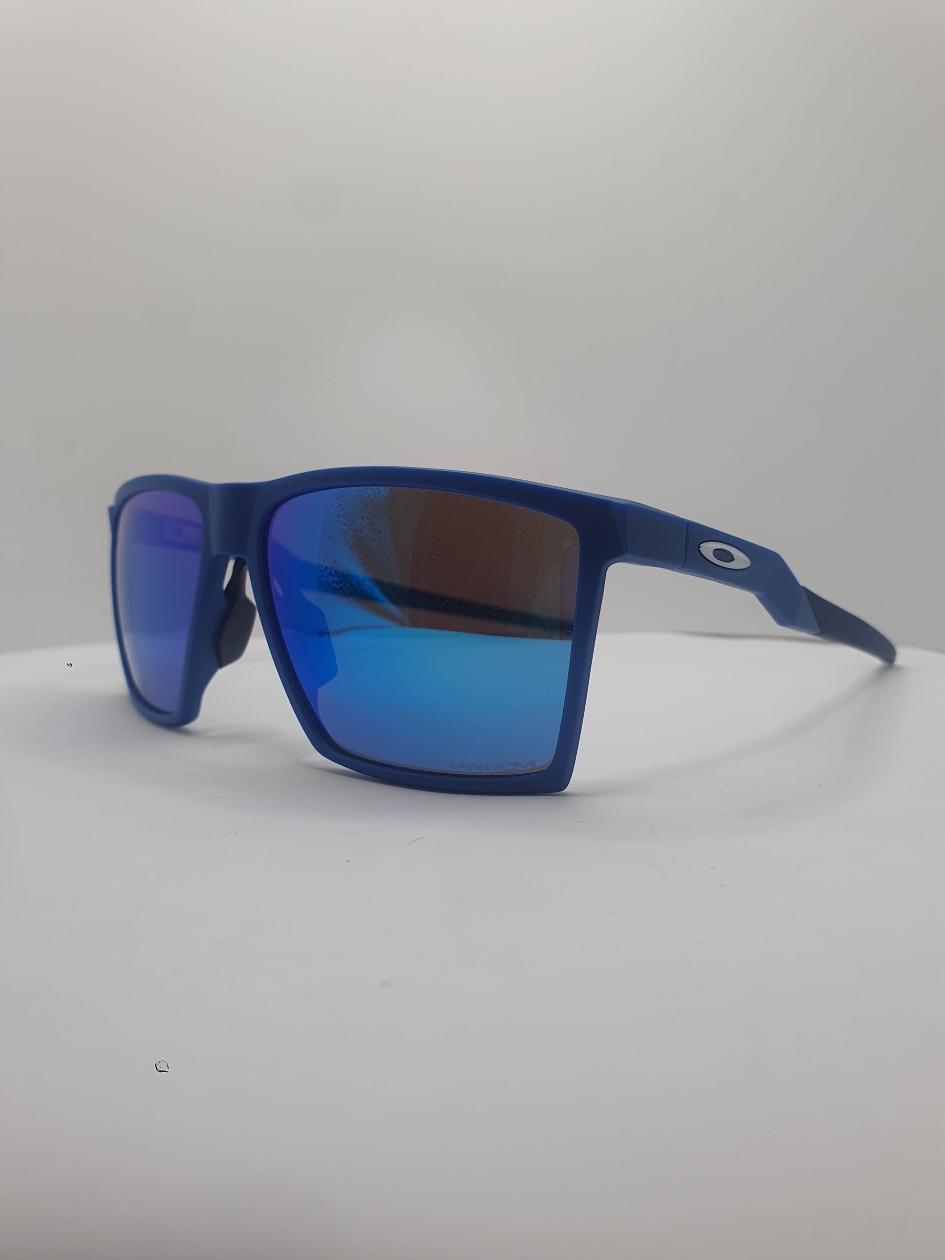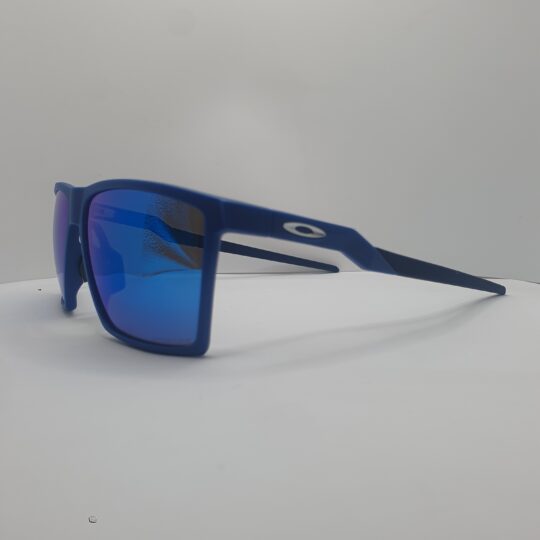 Montatura e aste blu navy opaco, logo oakley argento satinato, lenti prizm sapphire