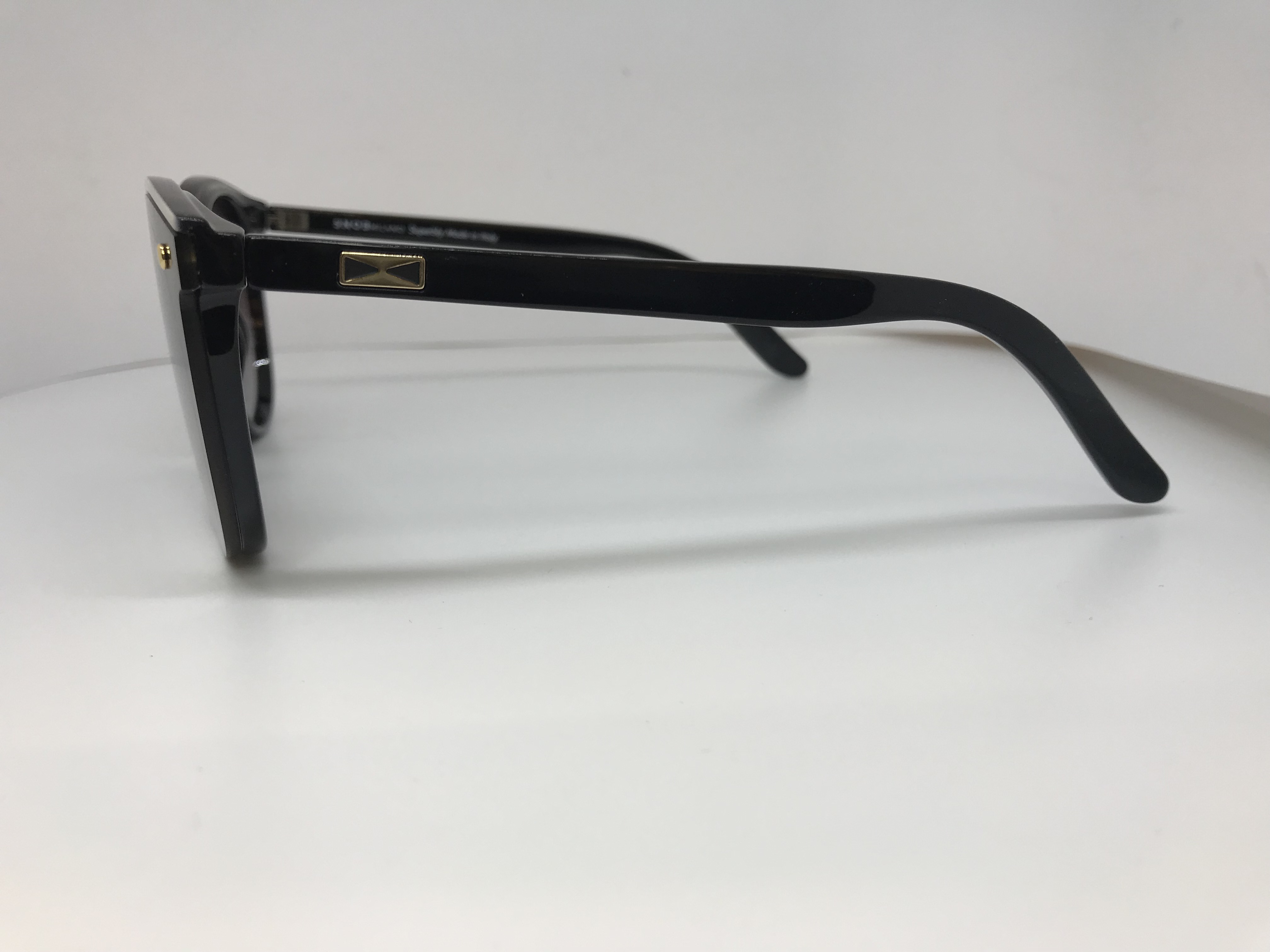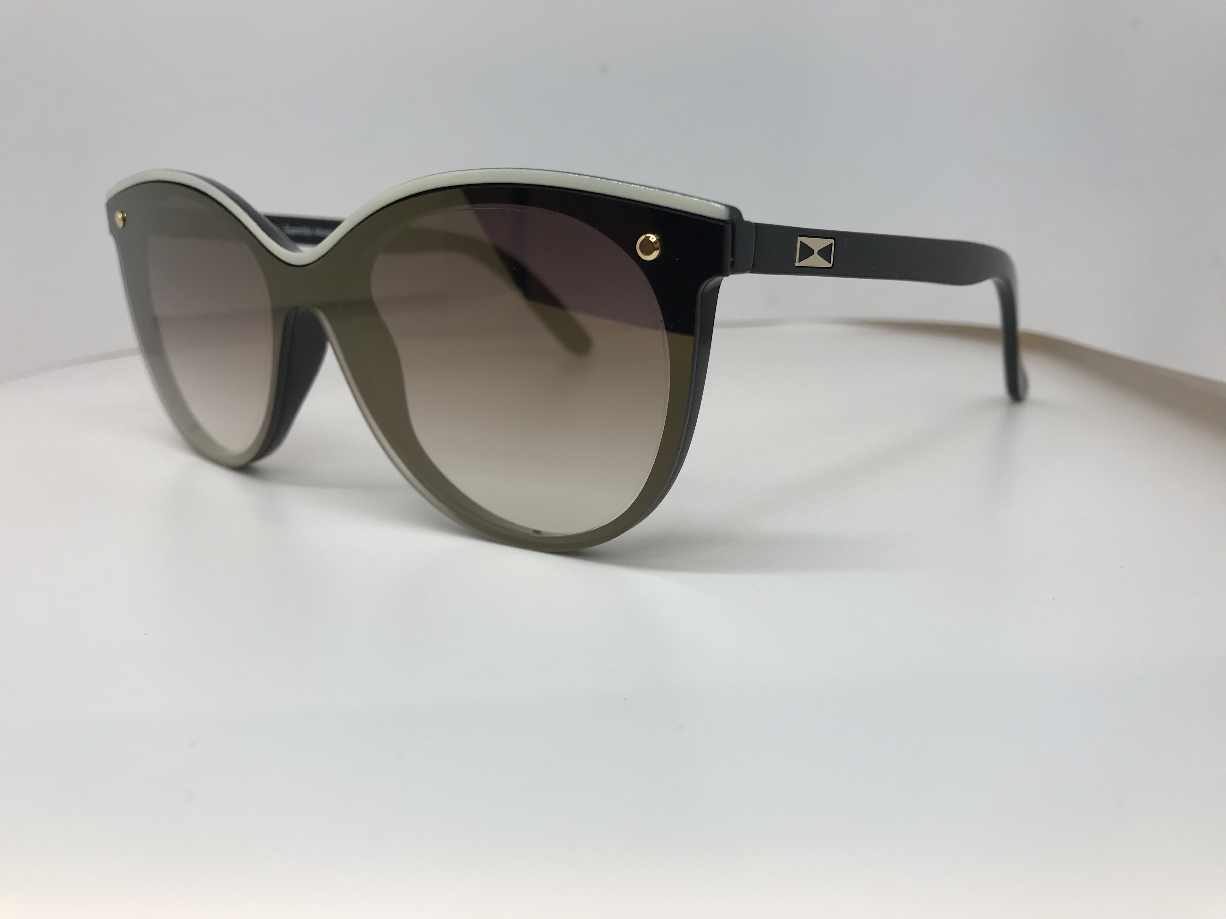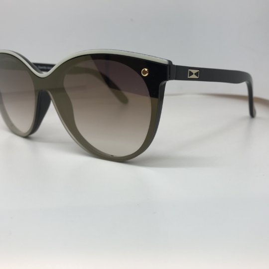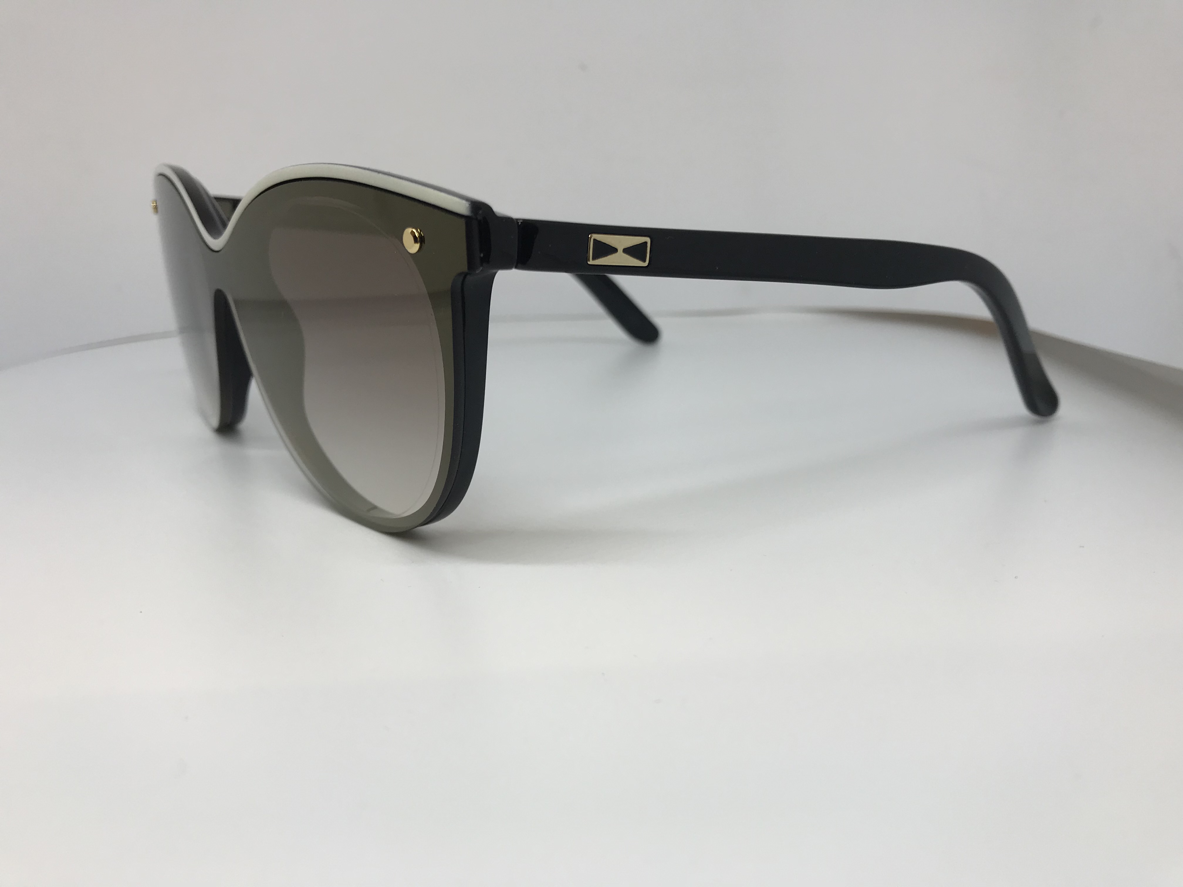 Montatura nero lucido con lente sfumata specchiata oro con bordo superiore bianco