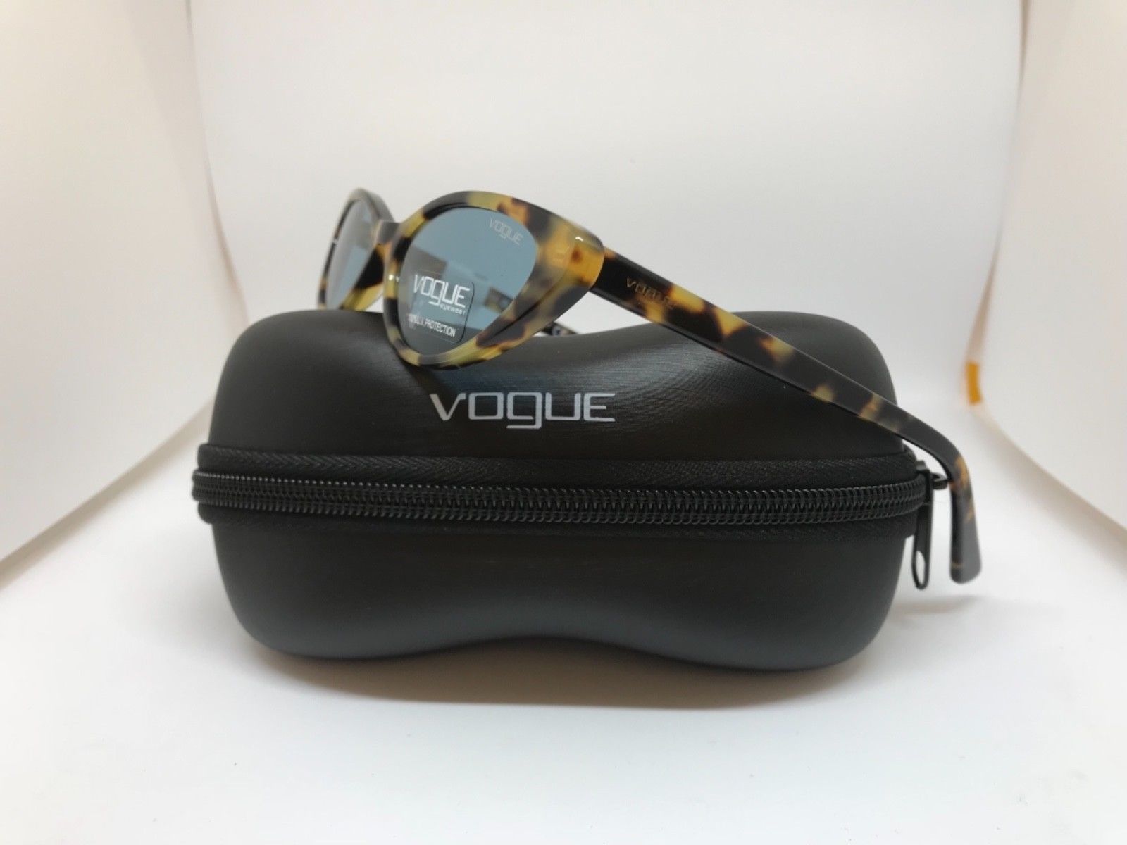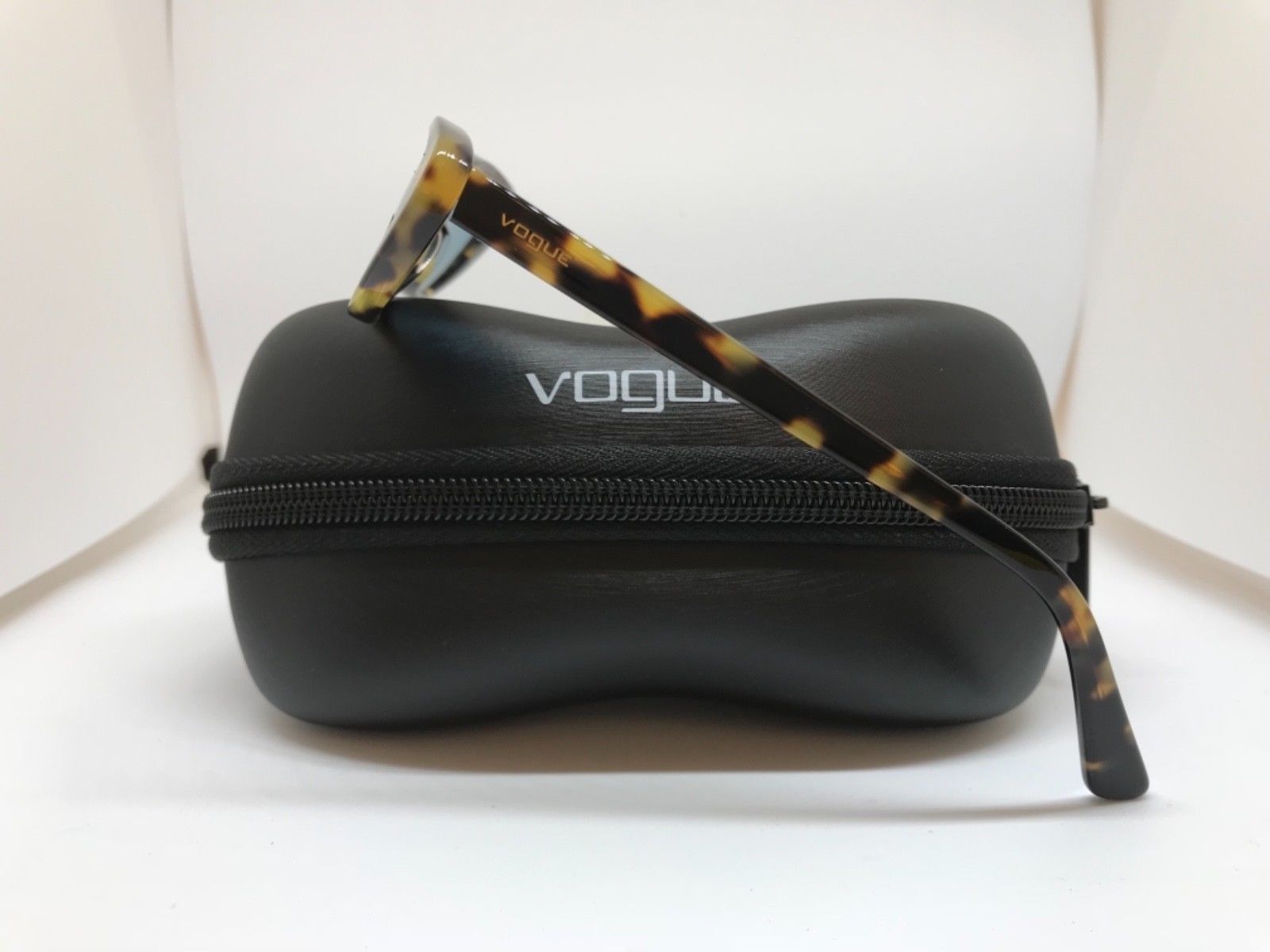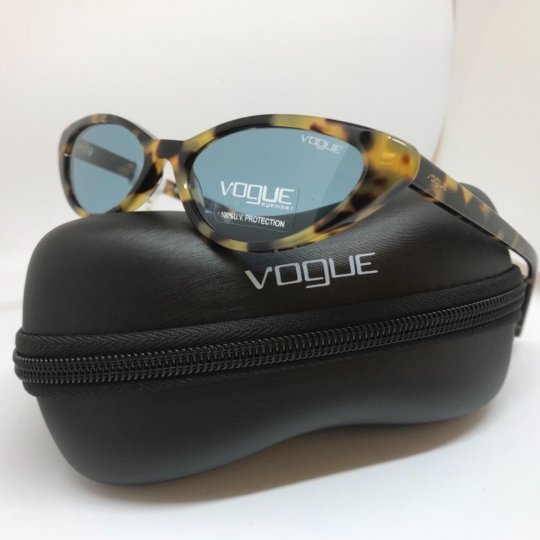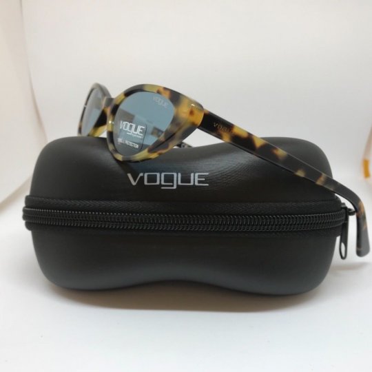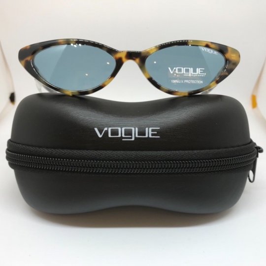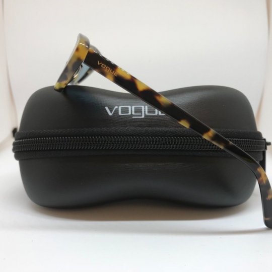 Montatura marrone chiaro tartarugato lucido con lenti azzurre